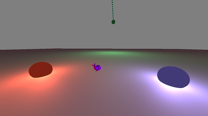 A physics simulation (written in C++ with GLUT / OpenGL) involving springs, simple collisions, and multiple lights (with phong shading).