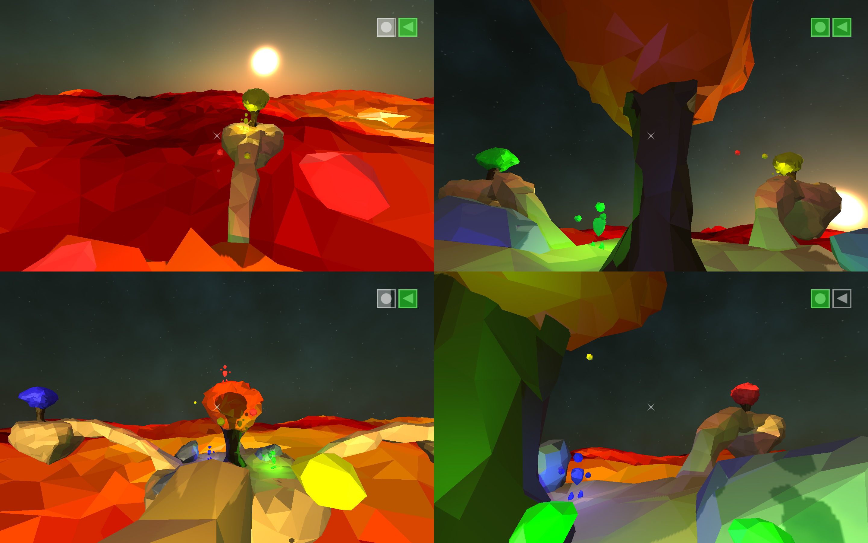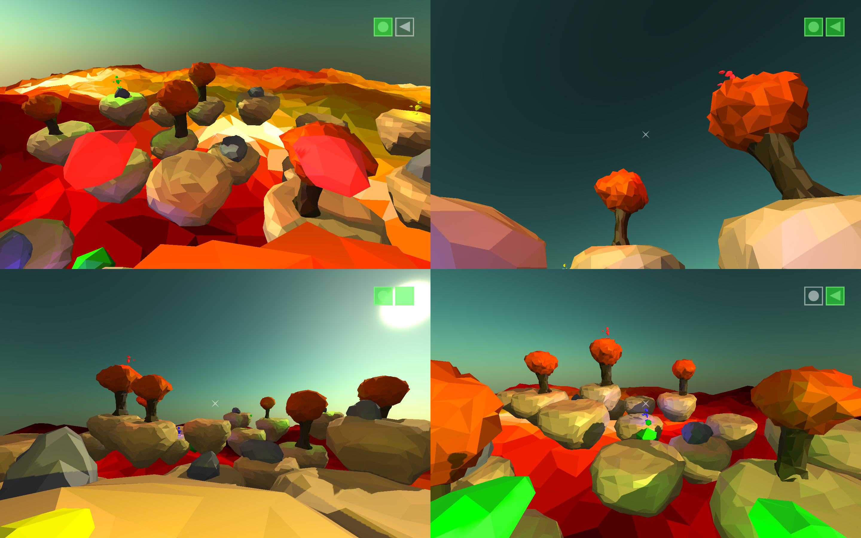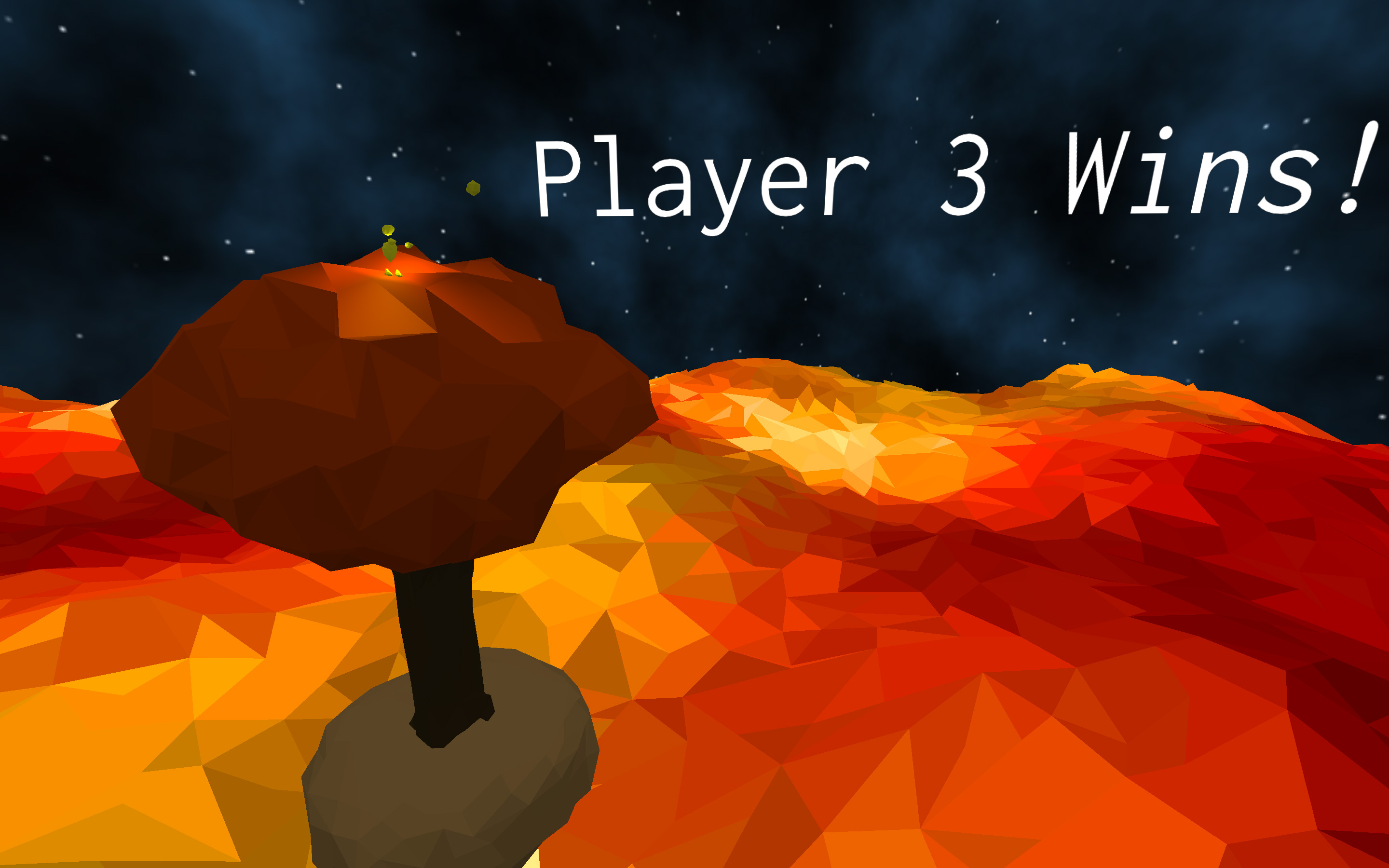 The game takes place on a series of islands floating above a sea of lava. Each player controls a golem with the ability to throw explosive rocks and push other players. The powerful golems are unable to be hurt by each others’ attacks, being susceptible only to the lava that lies below. The goal is simple: throw your opponents to their fiery demise and be the last one standing. Games consist of a series of short rounds, with a winner declared once a player has achieved a set number of victories. The game is simple to learn, and was designed to be played at parties.